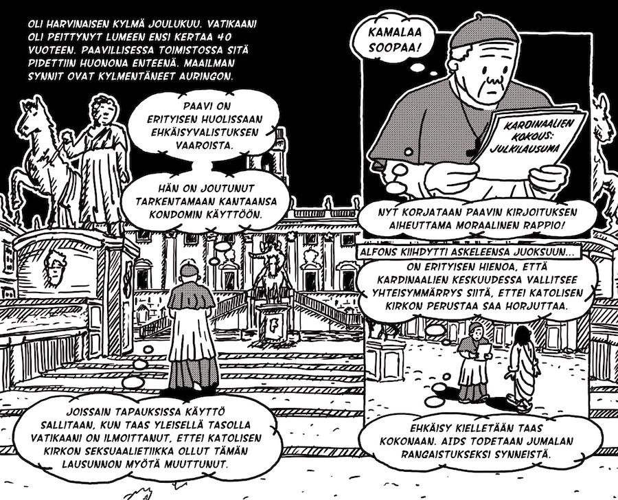 Sarjakuvaromaani on mukaansatempaava ajankuvaus niin uskonnoista, politiikasta, ympäristönsuojelusta kuin rakkaudestakin. Nämä 12 kertomusta ovat matkakirja ihmiskunnan päivänpolttavien kysymysten äärelle. Teos ei ole uskonnollinen nimestään huolimatta, paitsi että onhan siellä se Jeesus.