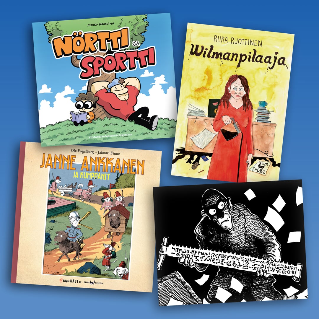 With this album and the accompanying original art exhibition, Finnish comic enthusiasts now also have the chance to get to know Dunce and his colorful circle of friends — their lively escapades, the joys and sorrows of parenthood, the challenges brought by technology, the gloom of the polar night, and all the ups and downs of everyday life!